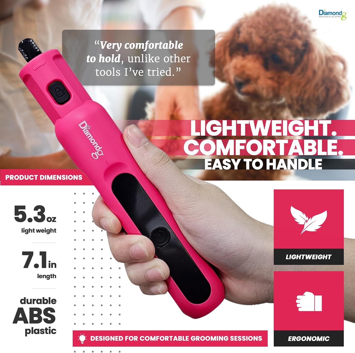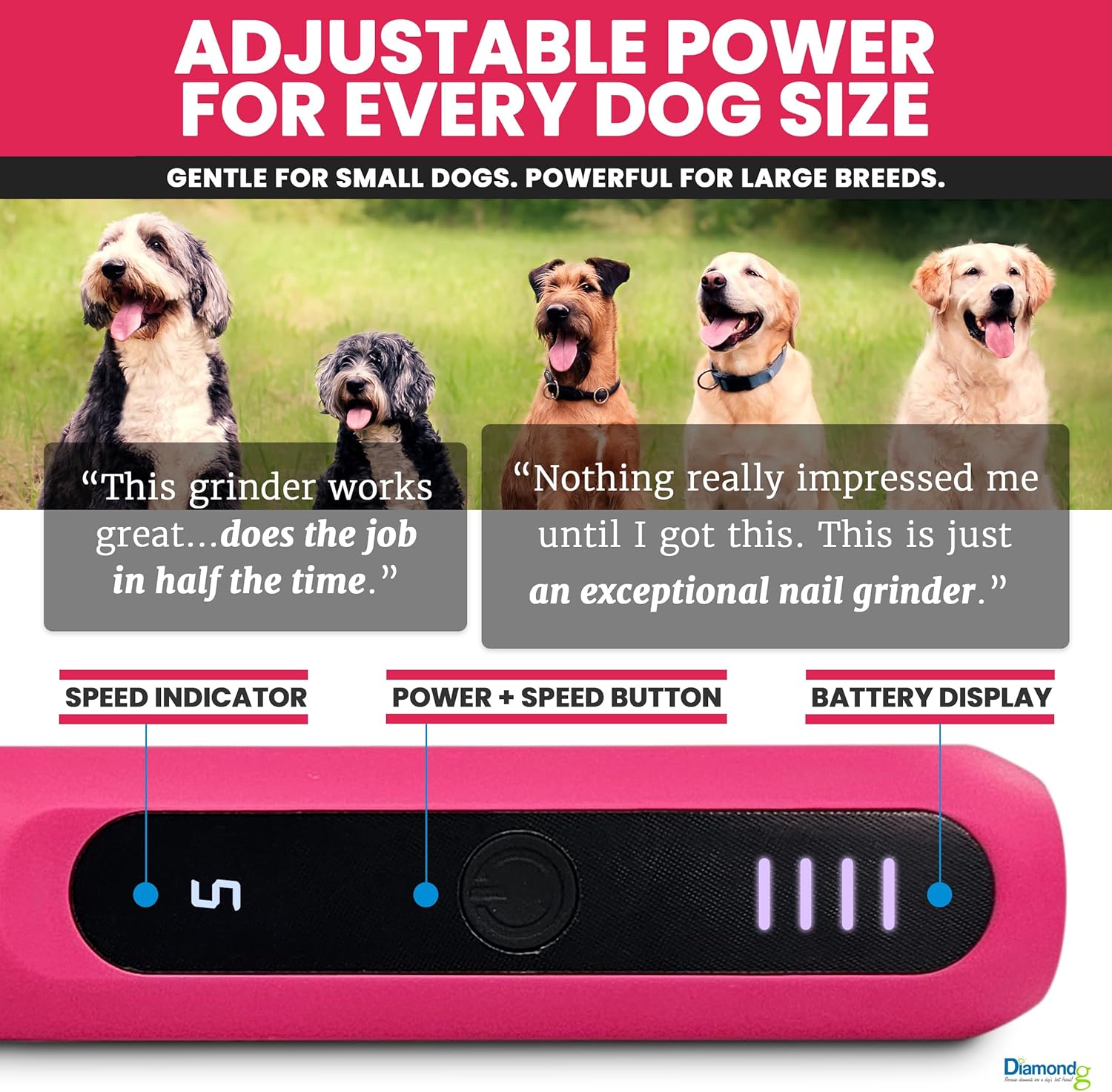 - Quiet operation for low stress nail grinding