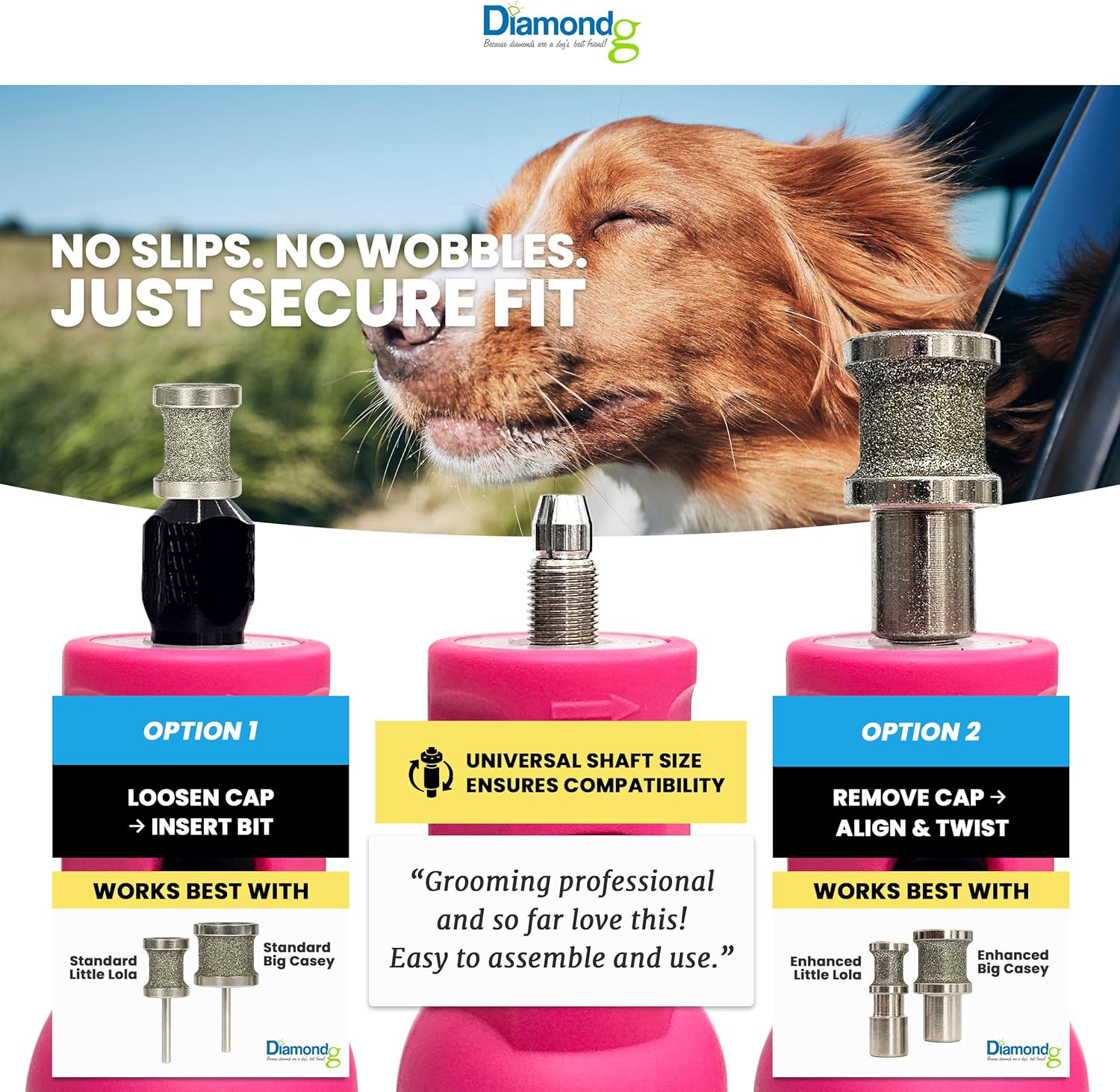 Our Gen 2 micro tool is compatible with both our Diamondg bits, but is not recommend for dogs larger than 30 pounds.